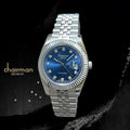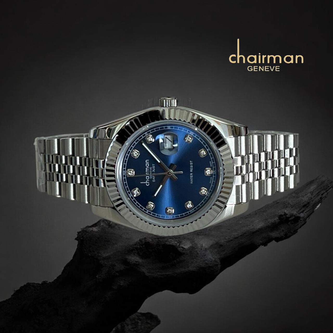 ساعة Chairman Geneve Dated للرجال بمينا زرقاء وسلسلة فضية
