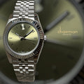 Chairman Geneve Dated Olive Green Dial Silver Chain Gents Watch