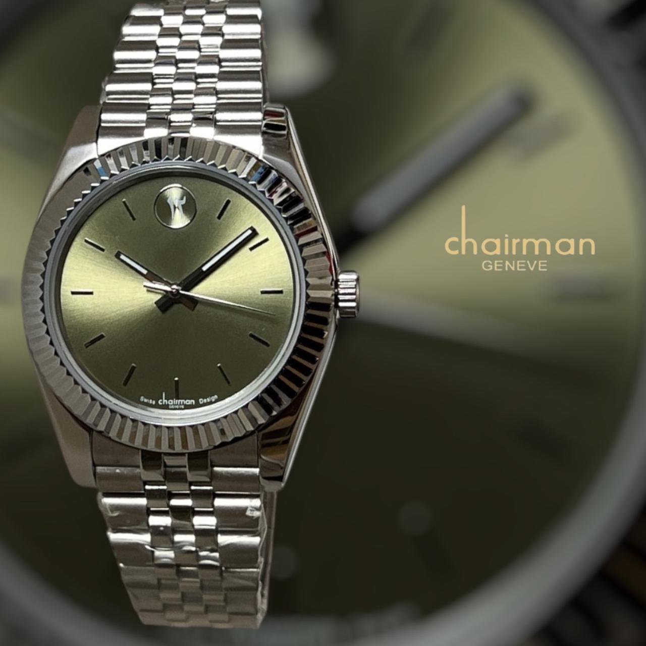 Elevate your style with the Chairman Geneve Gents Watch, featuring a sophisticated olive green dial and sleek silver chain. This timepiece combines luxury with functionality, offering date display for practical elegance. Perfect for the modern gentleman who appreciates refined craftsmanship and distinctive design. A statement accessory that transitions effortlessly from boardroom to evening events.