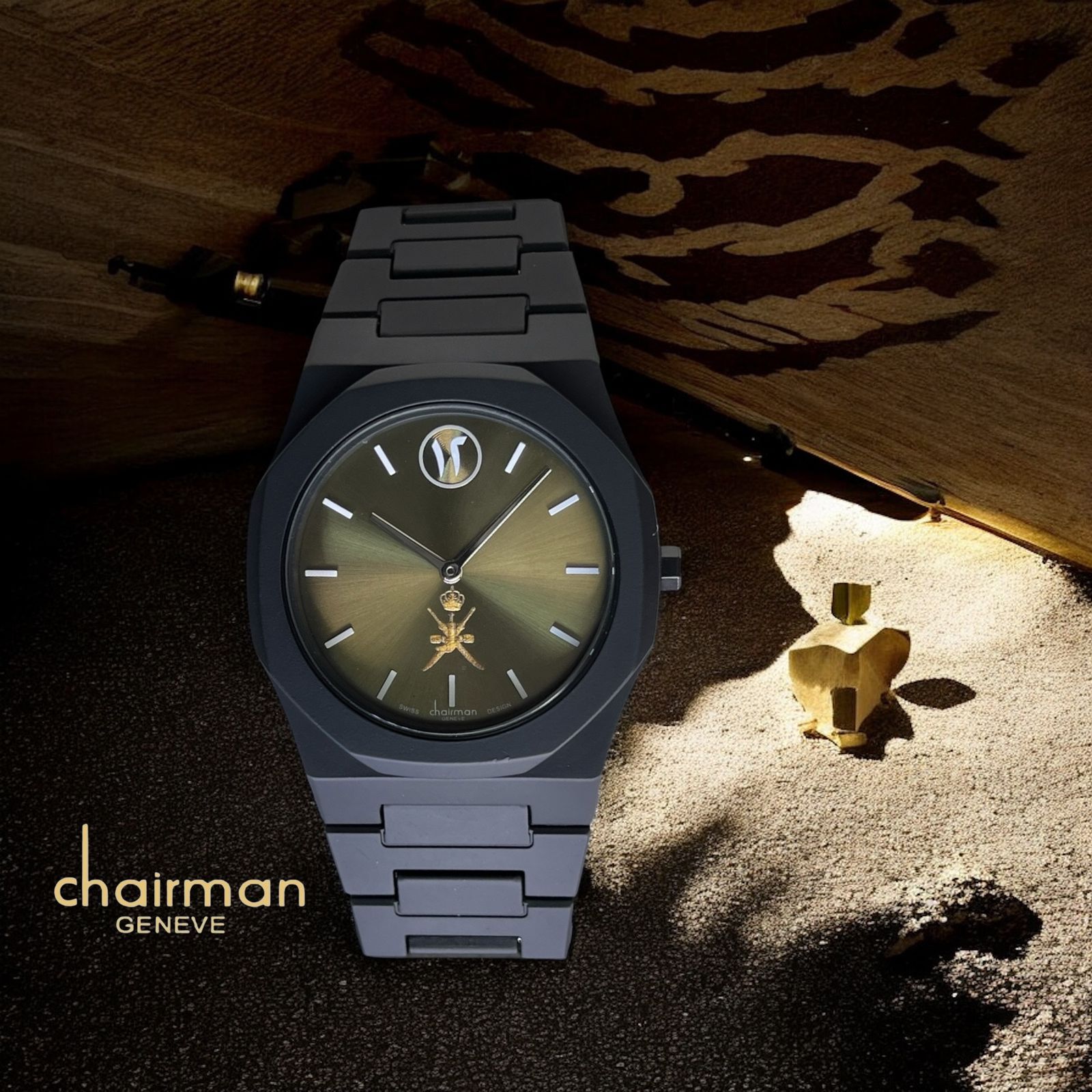 Elevate your style with the Chairman Geneve OMAN Emblem Black Gents Watch. Featuring a rich brown dial accented by the distinctive OMAN emblem, this timepiece blends tradition with modern elegance. Its sleek black case adds a bold contrast, making it perfect for both formal and casual wear. With precise dated functionality, it keeps you on time and in style every day. A sophisticated accessory designed for the discerning gentleman.