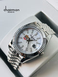 Chairman Geneve Dated UAE Emblem White Dial Silver Chain Gents Watch