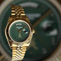 Chairman Geneve Day And Dated Arabic OMAN-Emblem Green Dial Gold Chain Gents Watch