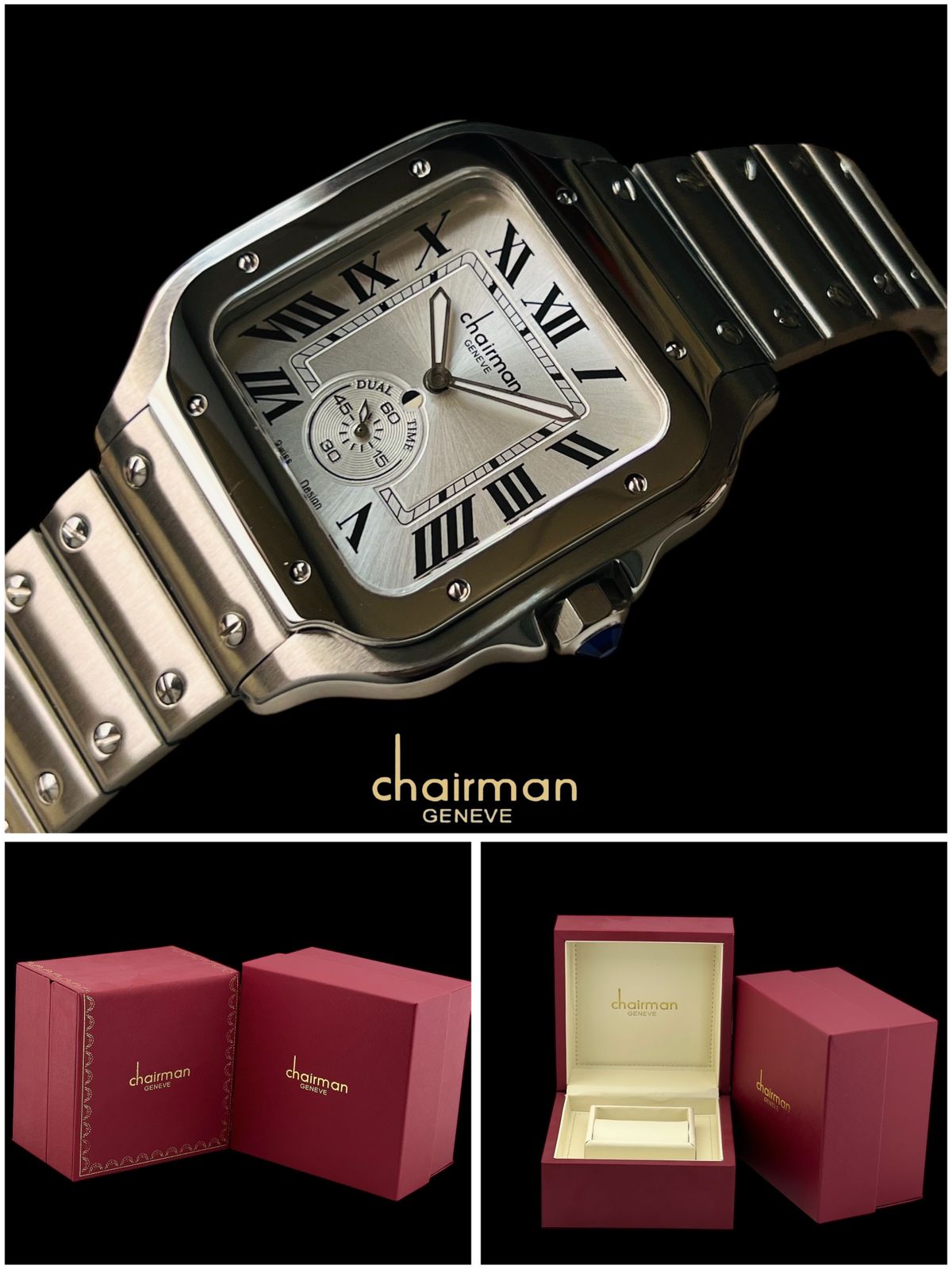 Chairman Geneve Dual Time Roman Baby Grey Dial Silver Chain Gents Watch