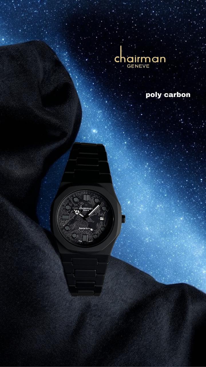 Chairman Geneve Marble Dated Dial Black Poly Carbon Gents Watch