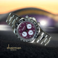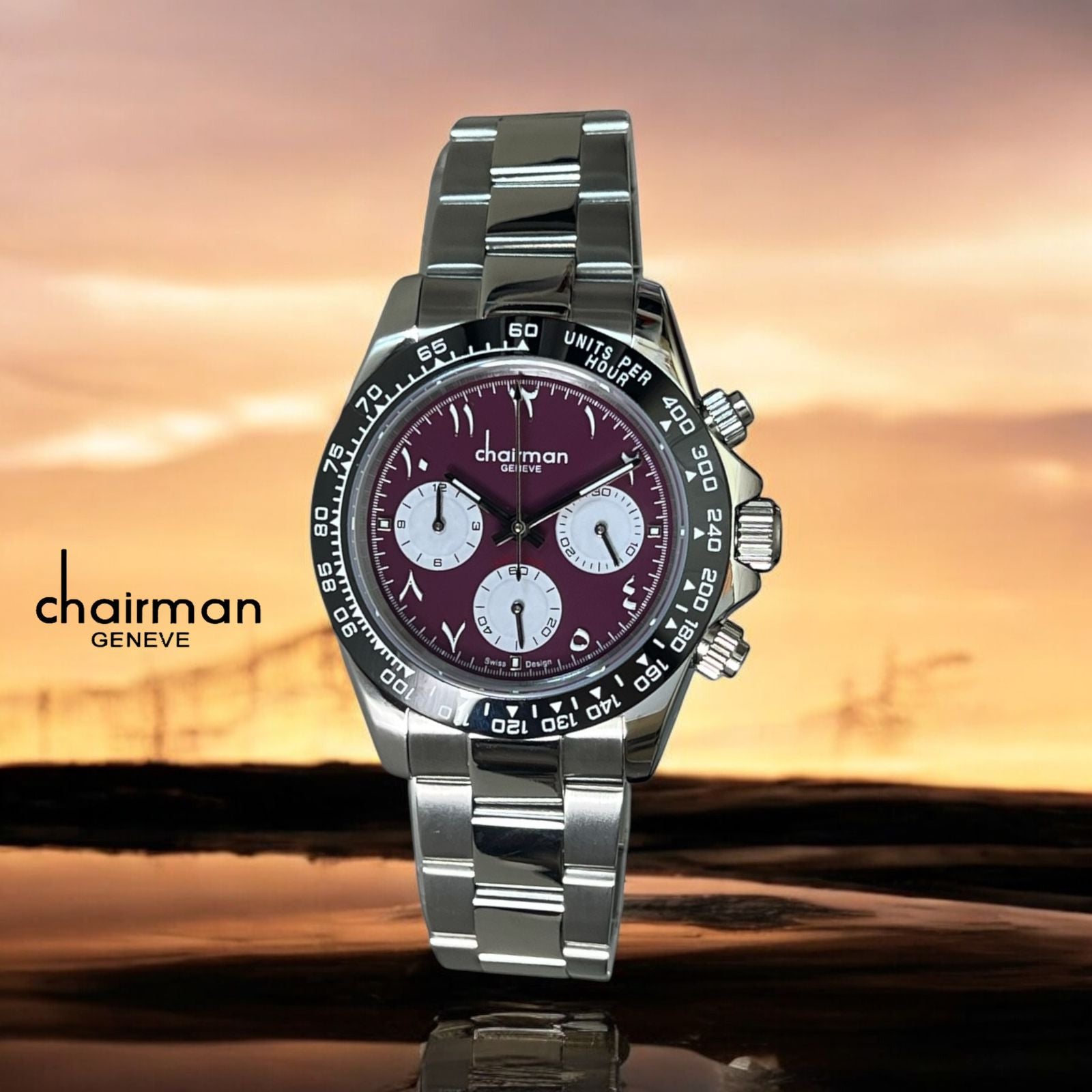 ساعة Chairman Geneve للرجال باللون العنابي ومينا عربية وحزام من الفولاذ