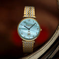 Chairman Geneve OMAN Emblem Arabic Baby Blue Dial Silver And Gold Chain Gents Watch