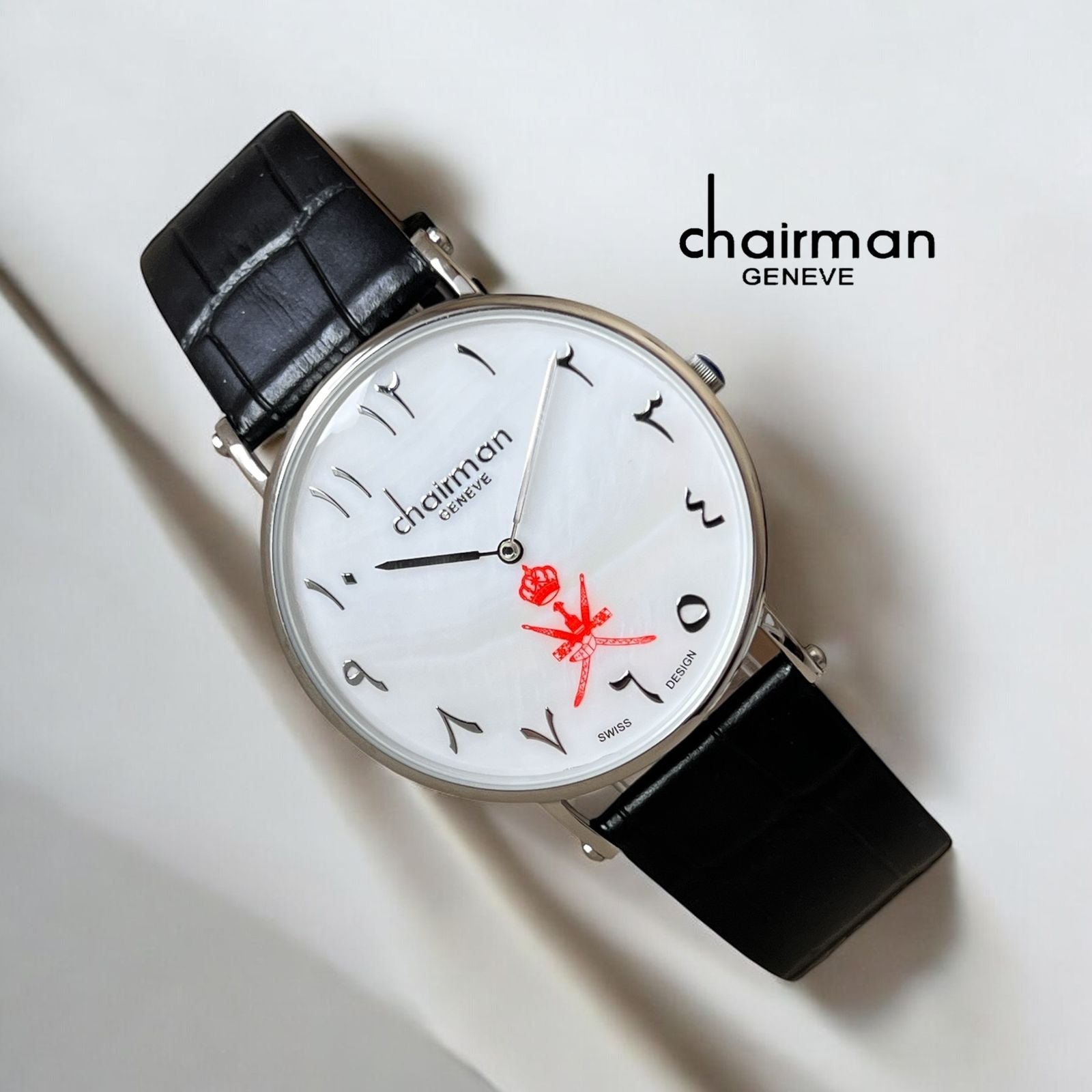 Chairman Geneve OMAN Emblem Arabic White Dial Black Strap Gents Watch
