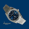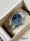 Chairman Geneve OMAN Emblem Dated Blue Dial Silver Chain Gents Watch