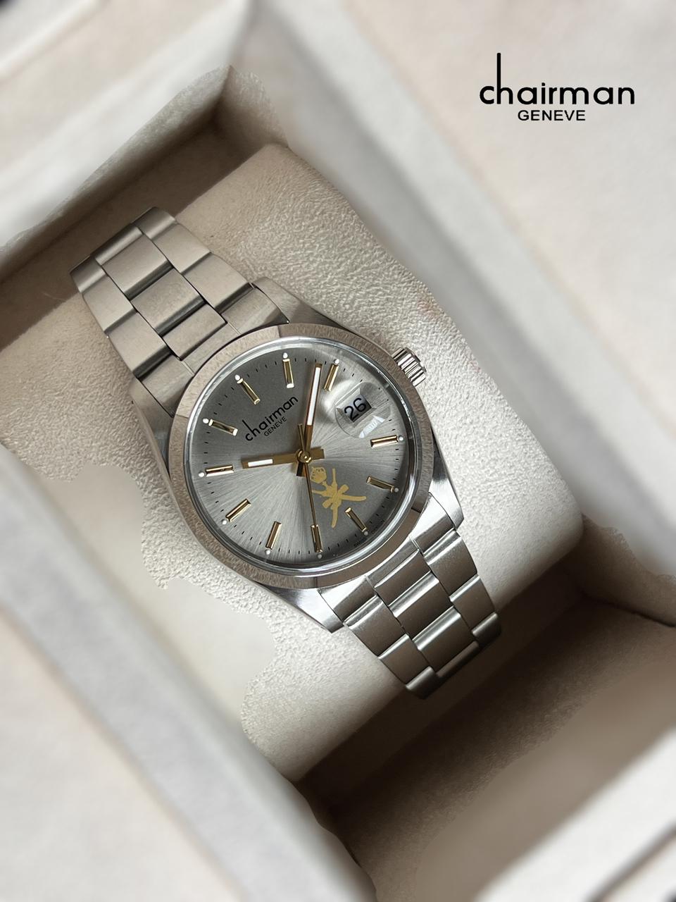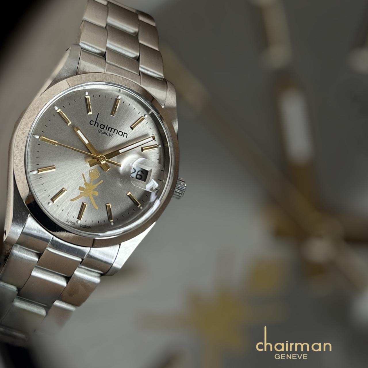 Elevate your style with the Chairman Geneve Oman Emblem watch. This distinguished timepiece features a sophisticated grey dial adorned with the prestigious Oman Emblem and a practical date function. The luxurious silver chain bracelet complements the refined design, creating a perfect balance of elegance and functionality. Crafted specifically for the discerning gentleman, this watch makes a powerful statement while maintaining timeless appeal.
