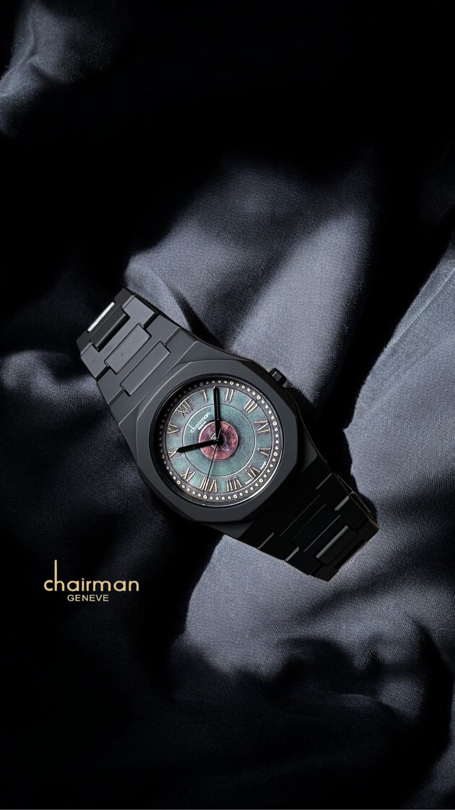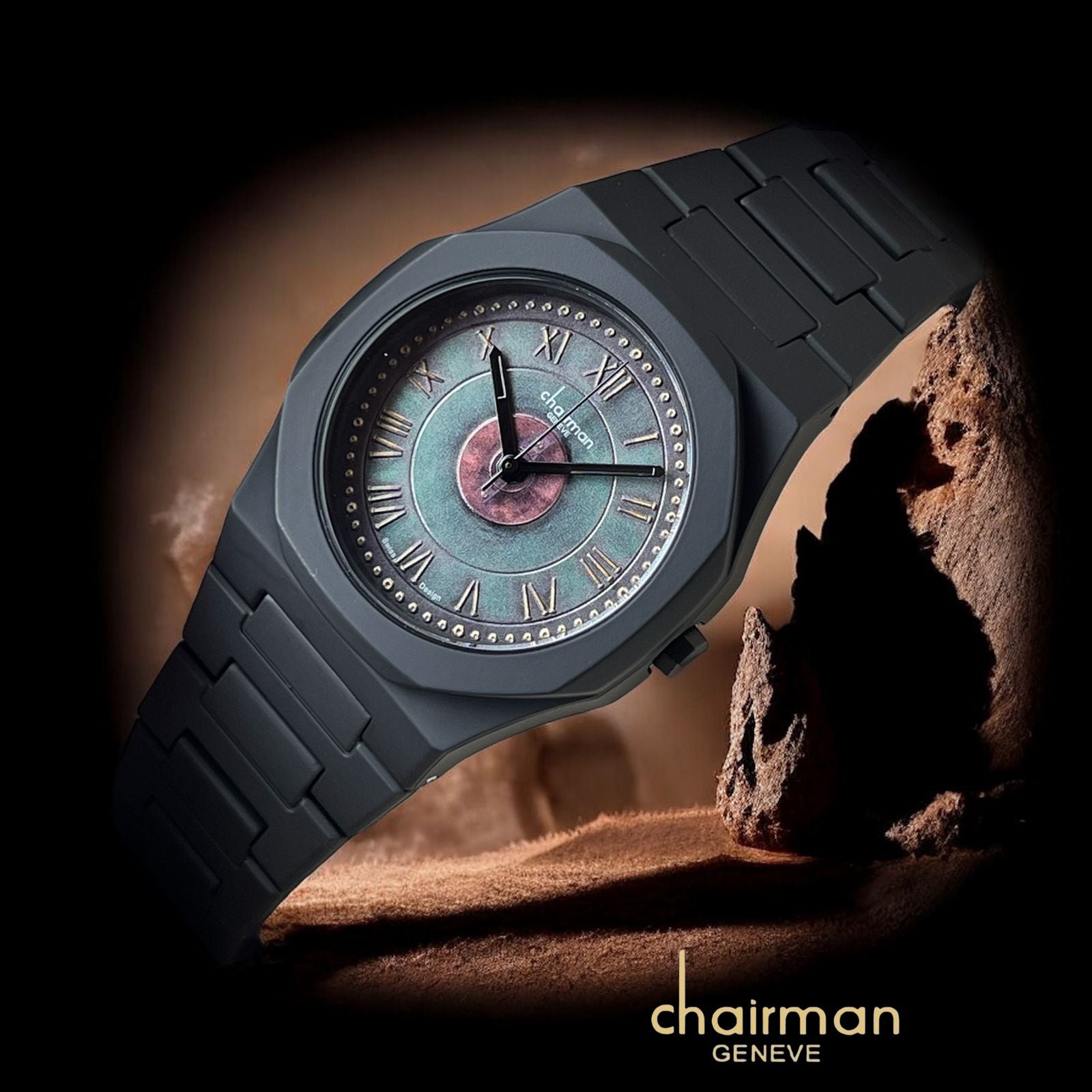 Elevate your style with the Chairman Geneve Gents Watch, featuring a striking green dial adorned with classic Roman numerals. Its sleek black chain strap offers a bold contrast, combining timeless elegance with modern sophistication. Perfect for any occasion, this watch delivers both refined aesthetics and reliable timekeeping to complement your distinguished look.