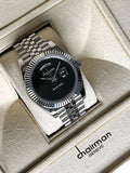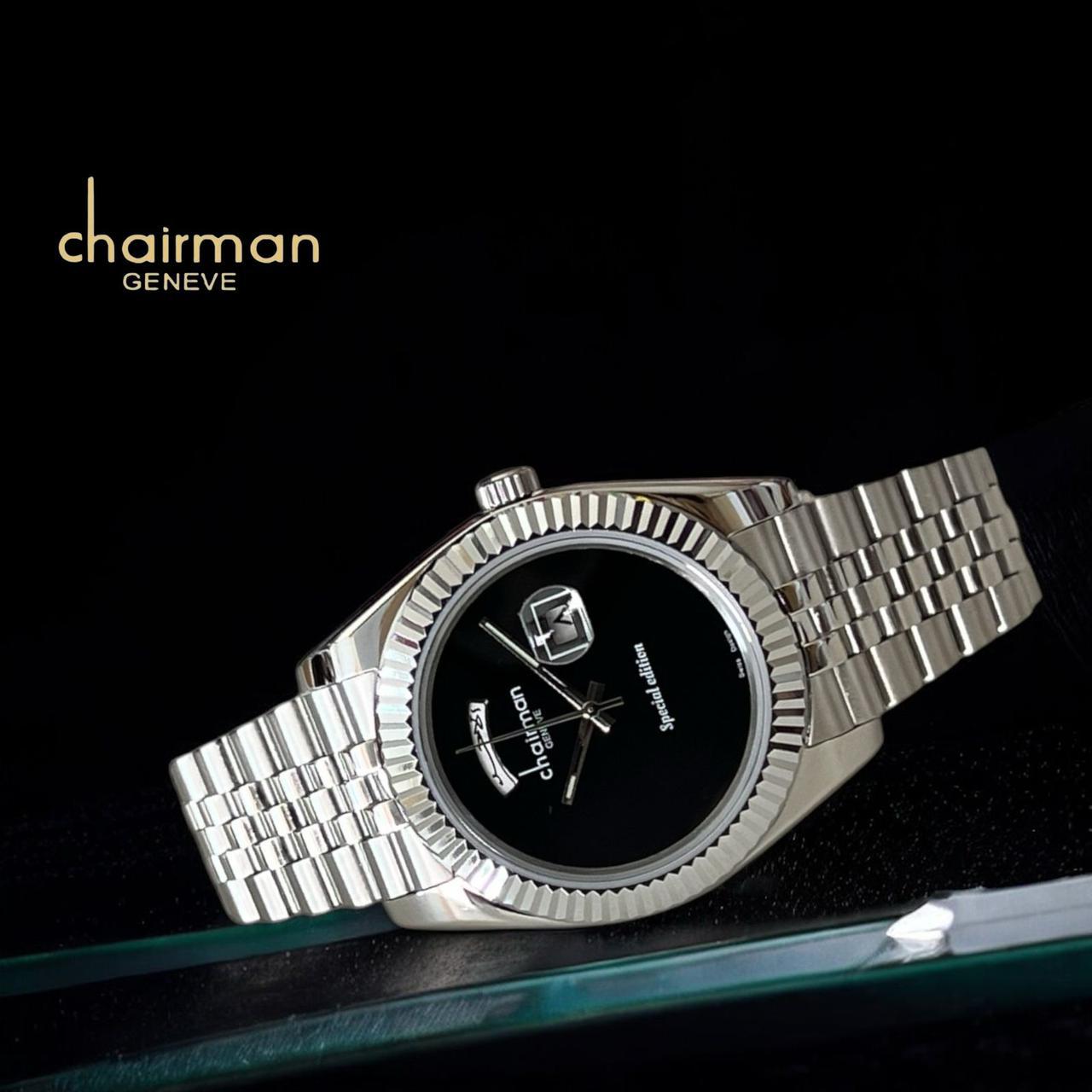 Chairman Geneve Special Edition Day And Dated Black Dial Silver Chain Gents Watch