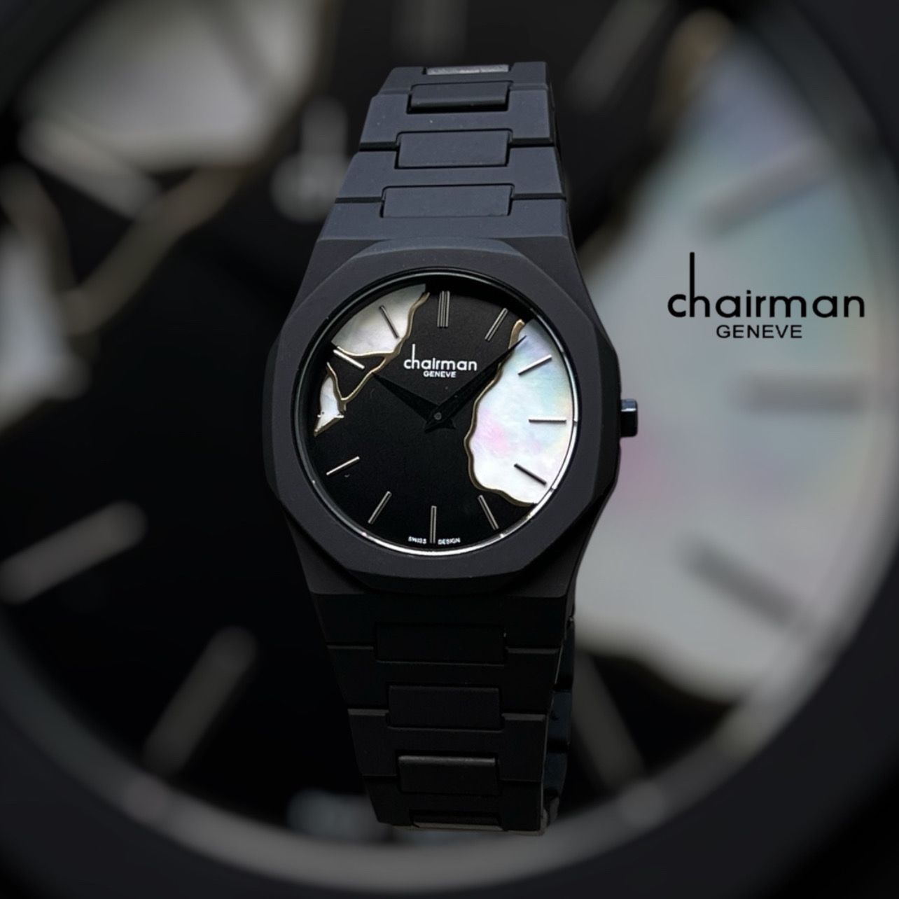 Chairman Geneve Swiss Design Black And White Dial Black Gents Watch