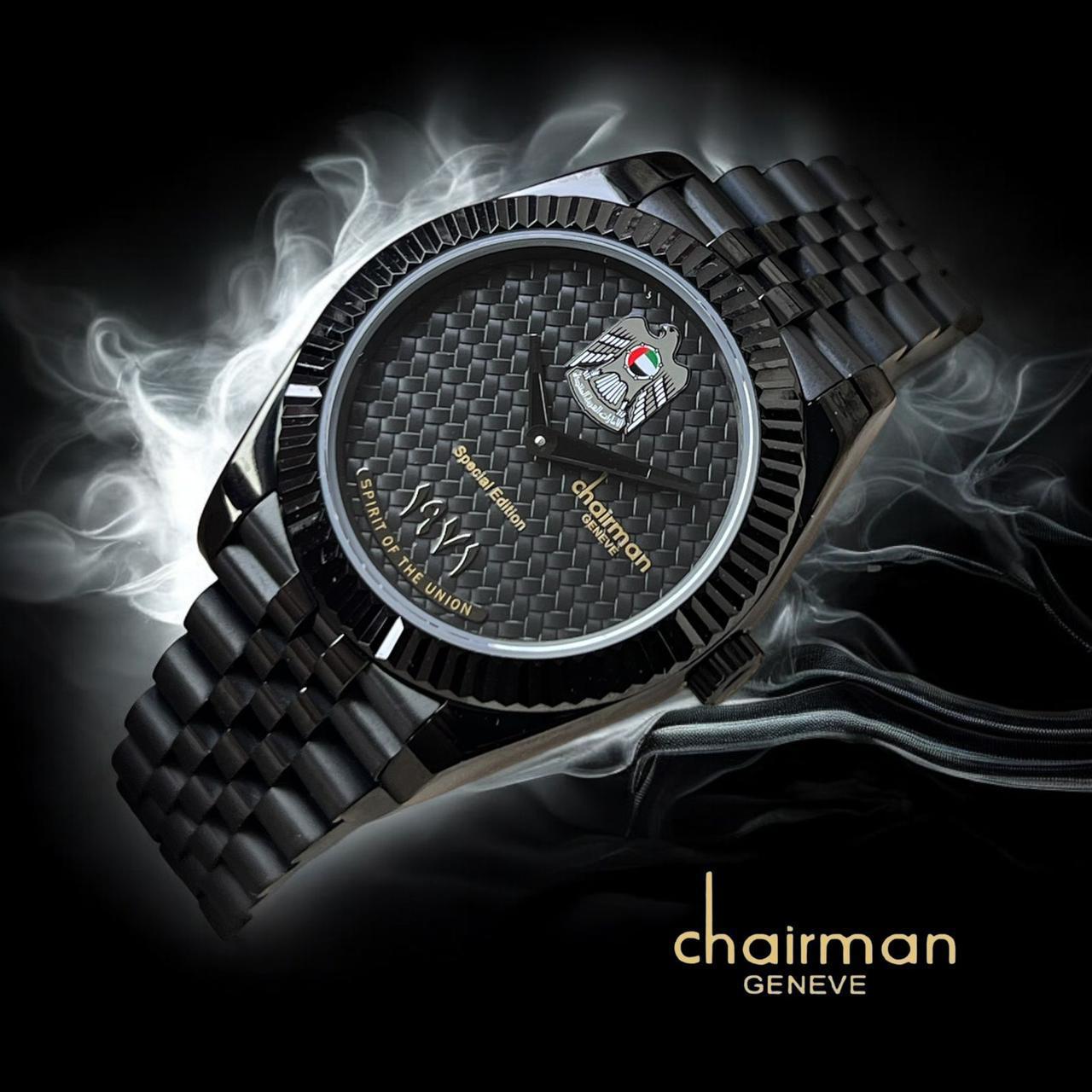 Chairman Geneve UAE Emblem Black Dial Black Chain Gents Watch