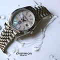 Chairman Geneve UAE Emblem Dated White Marble Dial Silver Chain Gents Watch