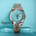 Chairman Geneve UAE Emblem Day And Dated Sky Blue Dial Silver Chain Gents Watch