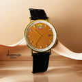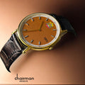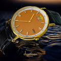 Chairman Geneve UAE Emblem Golden Dial Black Strap Gents Watch
