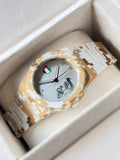 Chairman Geneve UAE Flag Sheik Photo Arabic Grey Dial White And Brown Poly Carbon Gents Watch