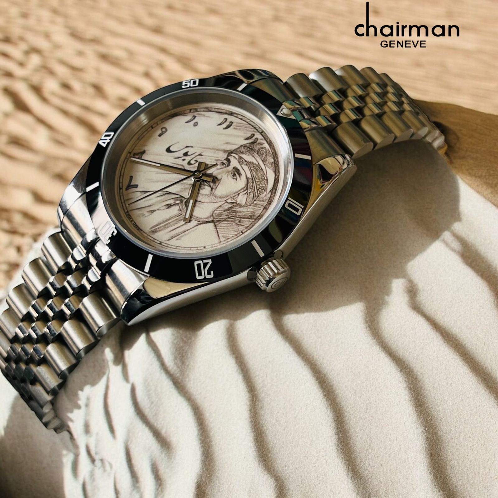 Experience timeless elegance with the Chairman Geneve UAE Sheik watch, a sophisticated timepiece designed for the discerning gentleman. Featuring an exquisite beige dial with authentic Arabic numerals, this watch seamlessly blends cultural heritage with refined craftsmanship. The gleaming silver chain bracelet adds a touch of luxury, while the precision movement ensures reliable timekeeping. Perfect for formal occasions or everyday wear, this gents watch makes a distinguished statement that reflects your appreciation for quality and style.