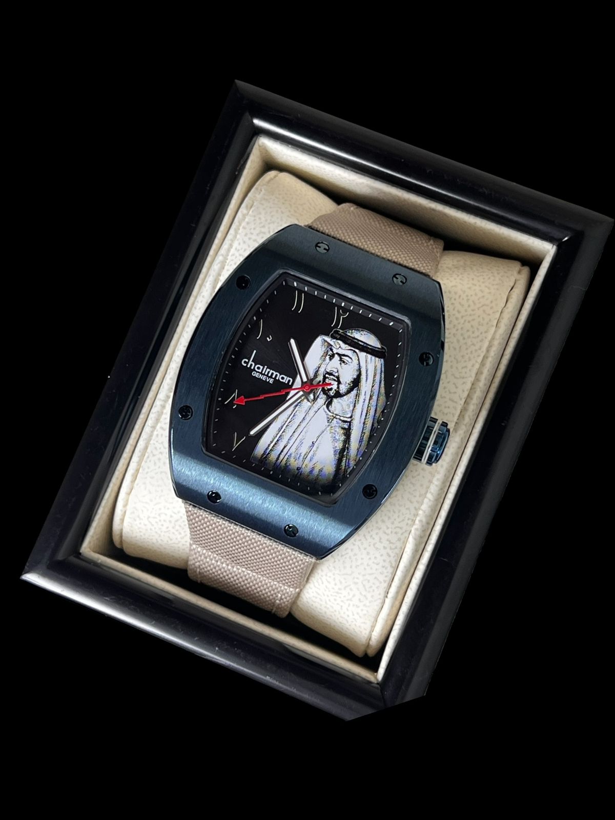 Chairman Geneve UAE Sheik Arabic Black Dial Beige Strap Gents Watch