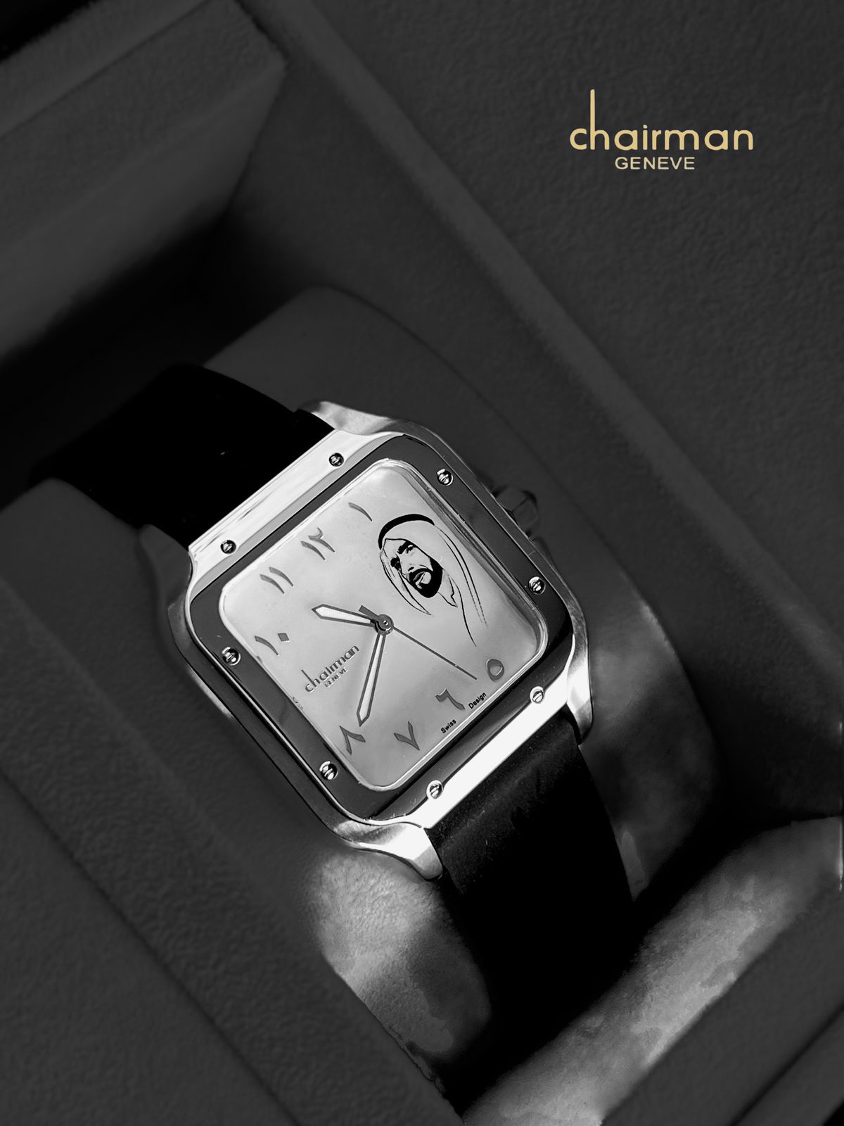 Chairman Geneve UAE Sheik Arabic White Dial Black Strap Gents Watch