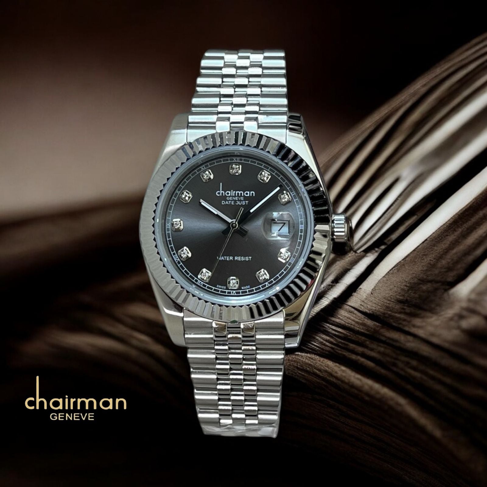 حافظ على دقة مواعيدك وأناقتك مع ساعة Chairman Geneve المقاومة للماء. صُممت هذه الساعة بمينا سوداء مؤرخة وسلسلة فضية، وتضفي لمسة من الأناقة على أي مظهر. لا تقلق بشأن التعرض للمطر، فهذه الساعة مقاومة للماء أيضًا.