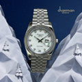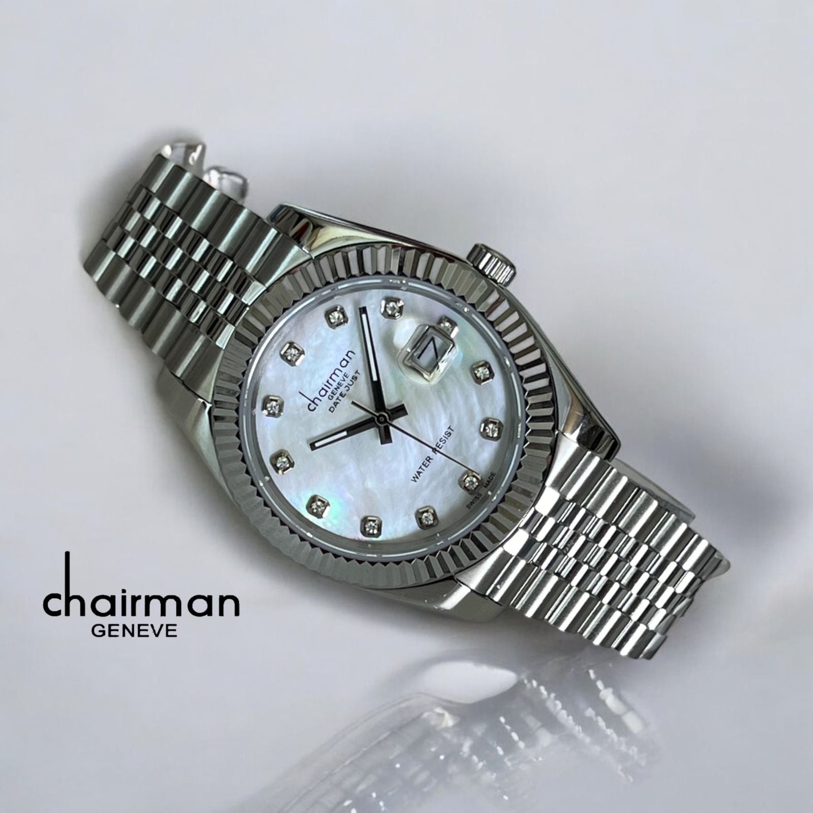 ساعة Chairman Geneve مقاومة للماء بمينا بيضاء وتاريخ وسلسلة فضية للرجال