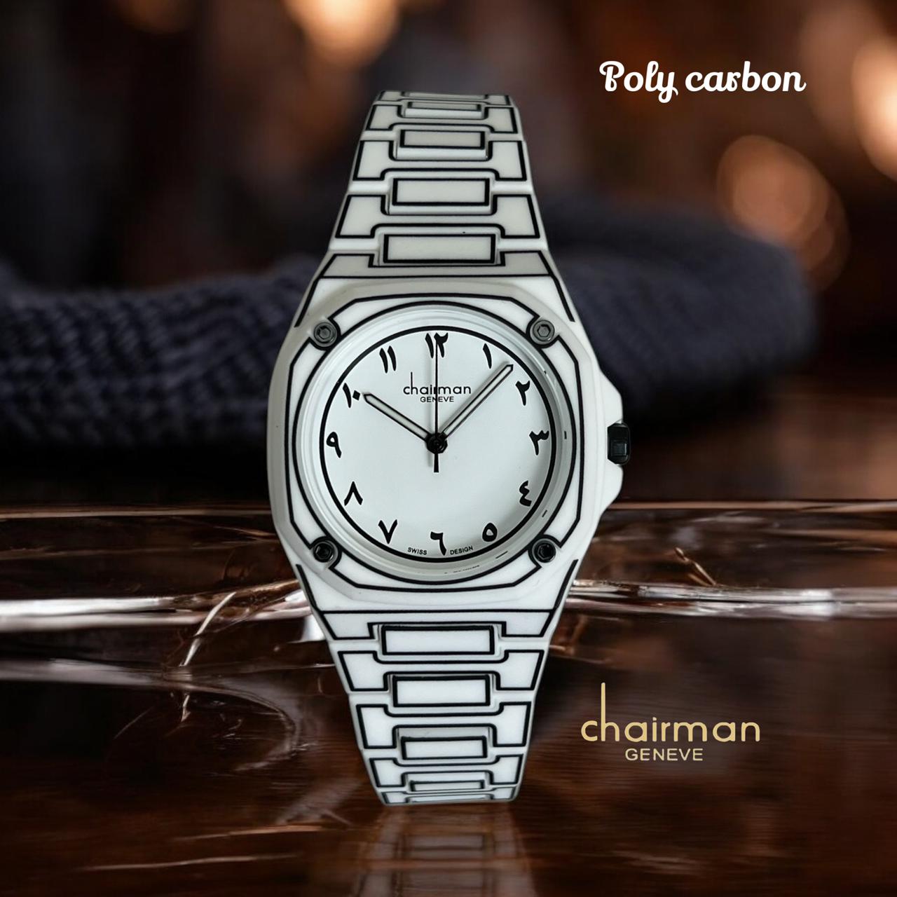 ارتقِ بأسلوبك مع ساعة Chairman Geneve White Arabic Dial. حزامها الأبيض والأسود الأنيق مع ساعة رجالية من البولي كربون يمنحك مظهرًا جريئًا. اعتنق المينا العربي الكلاسيكي وارتق بمظهرك دون عناء. توصيل مجاني الدفع عند الاستلام في جميع أنحاء الإمارات العربية المتحدة