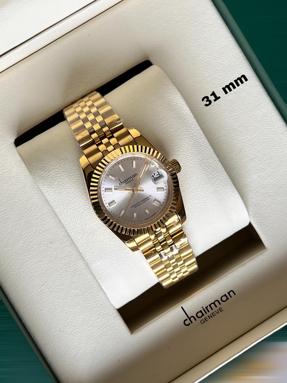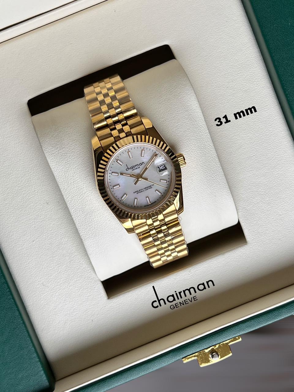 Chairman Geneve White Dated Dial Golden Chain Ladies Watch