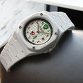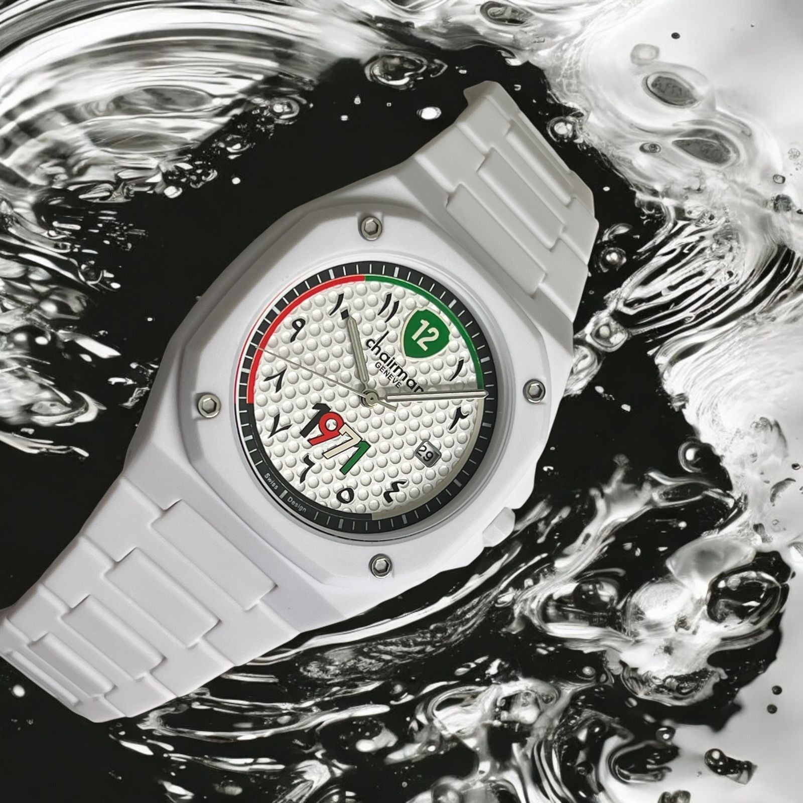 Elevate your style with the Chairman Geneve Year and Dated Arabic Bubble Dial White Poly Carbon Gents Watch. Featuring a distinctive bubble dial with elegant Arabic numerals, this timepiece combines classic design with modern functionality. The clear year and date display keeps you effortlessly organized, while the crisp white face adds a touch of sophistication to any outfit. Perfect for the discerning gentleman seeking both style and practicality in one exceptional watch.