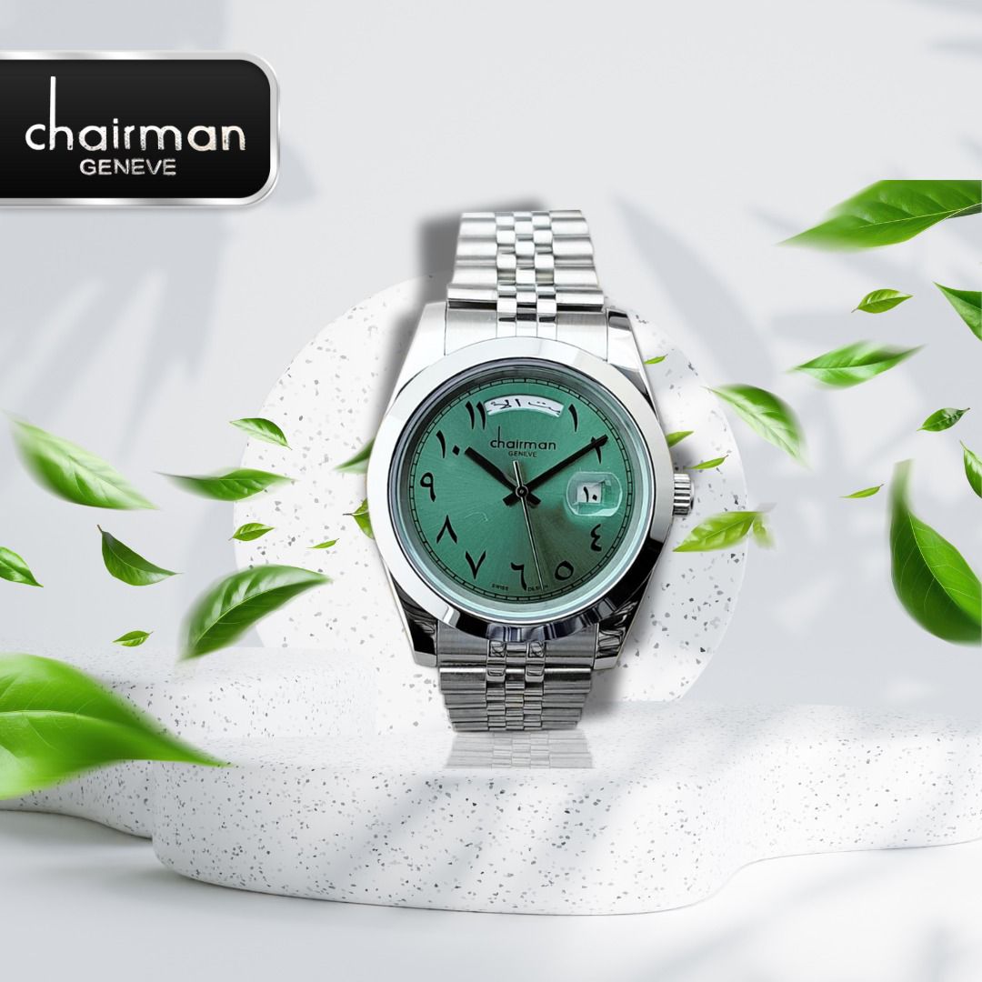 ساعة هدية للرجال من Chairman بمينا خضراء عربية وحزام سلسلة فضية