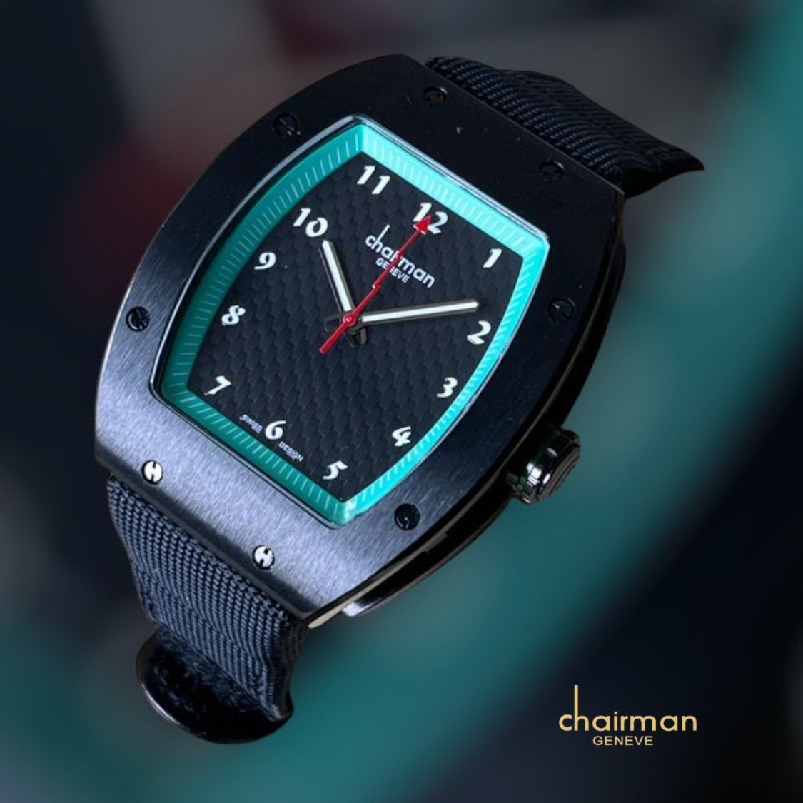ساعة Chairman Metallic Black Strap Quartz للرجال بمينا باللونين الأسود والأزرق الفاتح