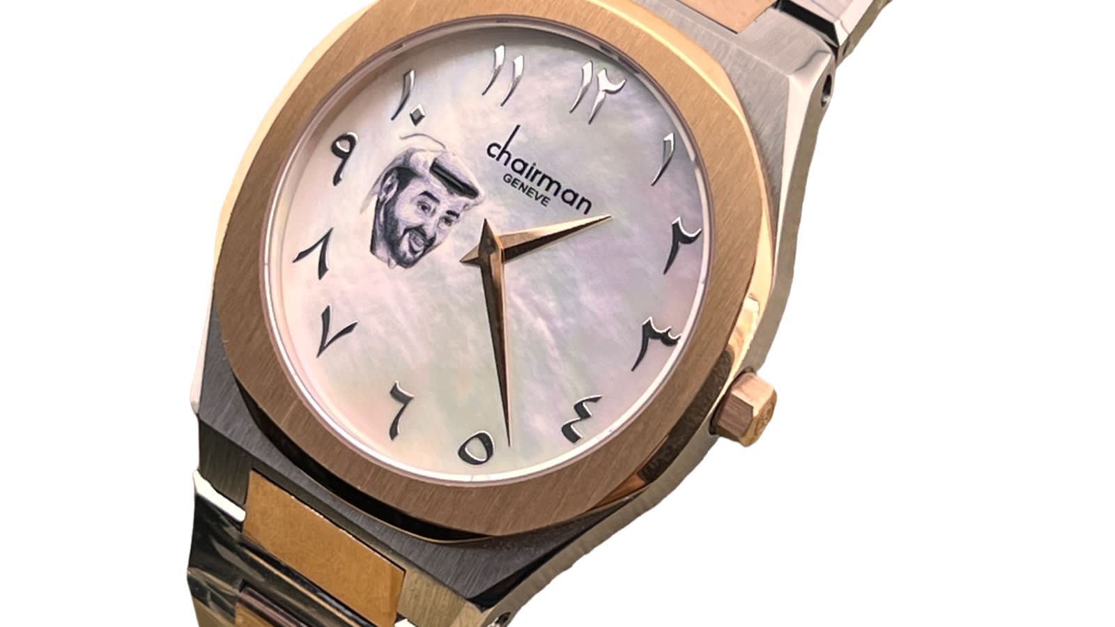 ساعة Chairman للرجال بحزام من الذهب الوردي ومينا بيضاء وسوار من الكوارتز
