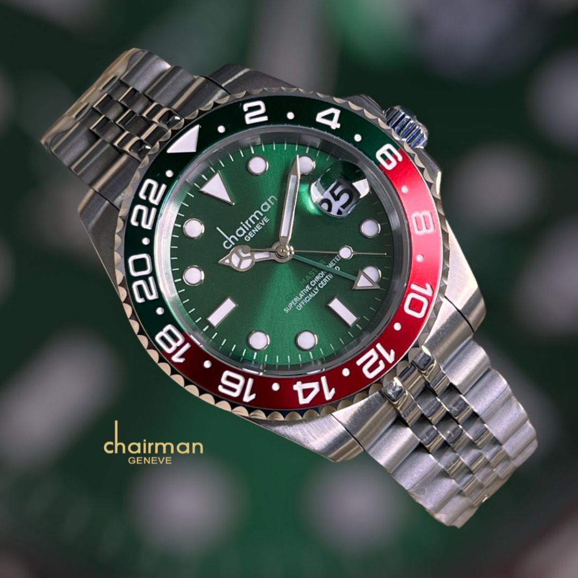 ساعة شيرمان كوارتز أنالوج من الفولاذ المقاوم للصدأ بمينا خضراء للرجال