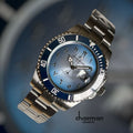 ساعة شيرمان كوارتز عربية من الستانلس ستيل بمينا زرقاء ورمادية