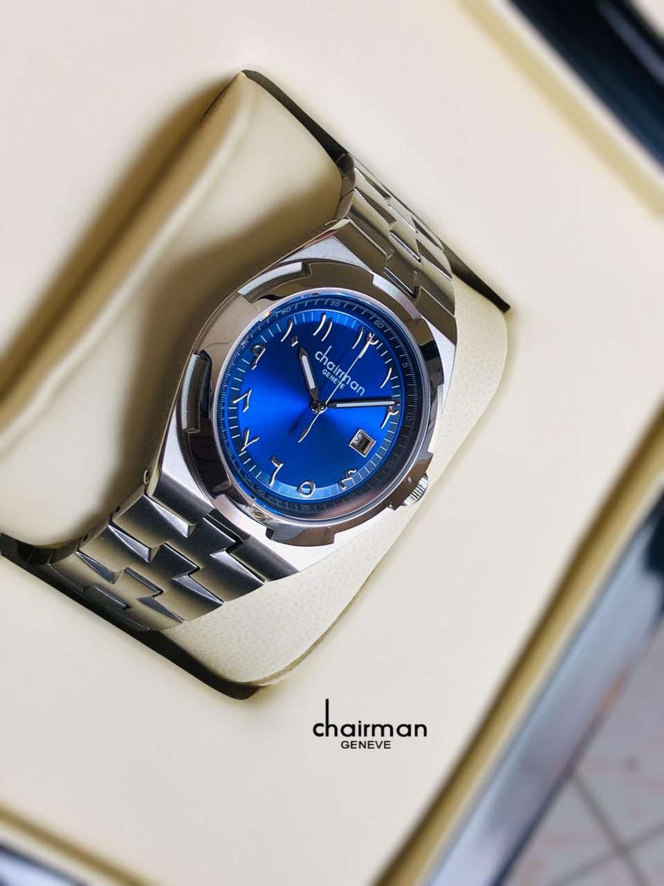 ساعة شيرمان كوارتز عربية من الستانلس ستيل بمينا زرقاء للرجال