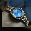 ساعة شيرمان كوارتز عربية من الستانلس ستيل بمينا زرقاء اللون