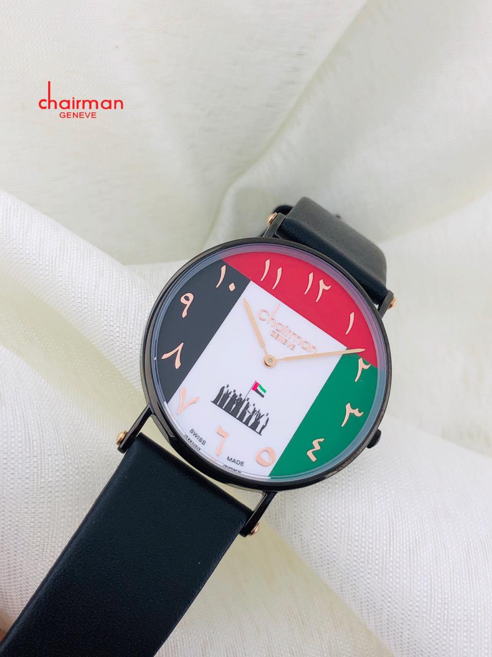ساعة رئيس دولة الإمارات العربية المتحدة بسوار أسود ورقم عربي للرجال