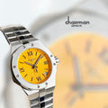 ساعة شيرمان للرجال - مينا صفراء كوارتز أنالوج مع سوار من الفولاذ المقاوم للصدأ
