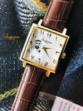 ساعة شيرمان للرجال بمينا عربية بيضاء وإطار ذهبي وحزام بني