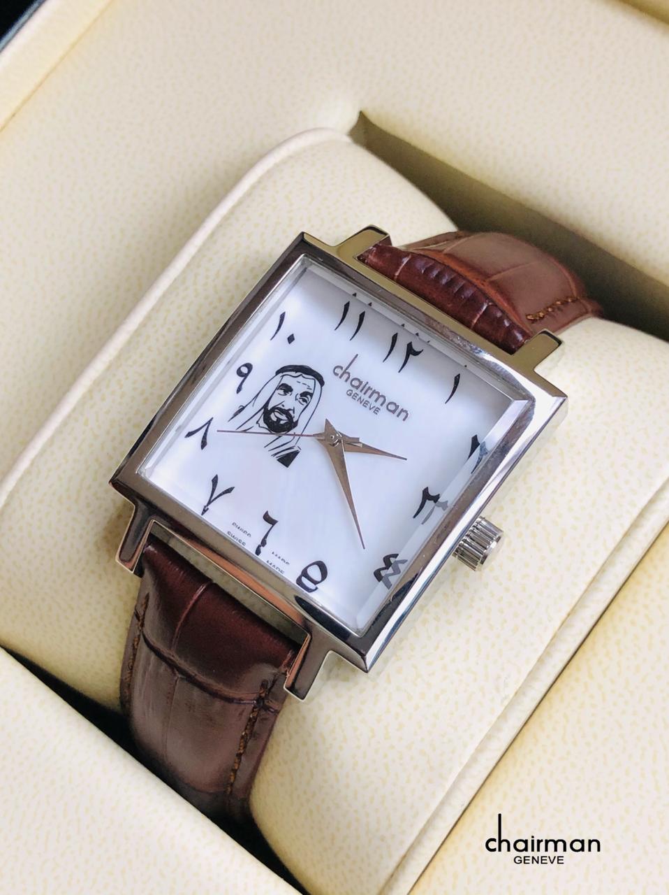 ساعة شيرمان للرجال بمينا عربية بيضاء وإطار فضي وحزام بني