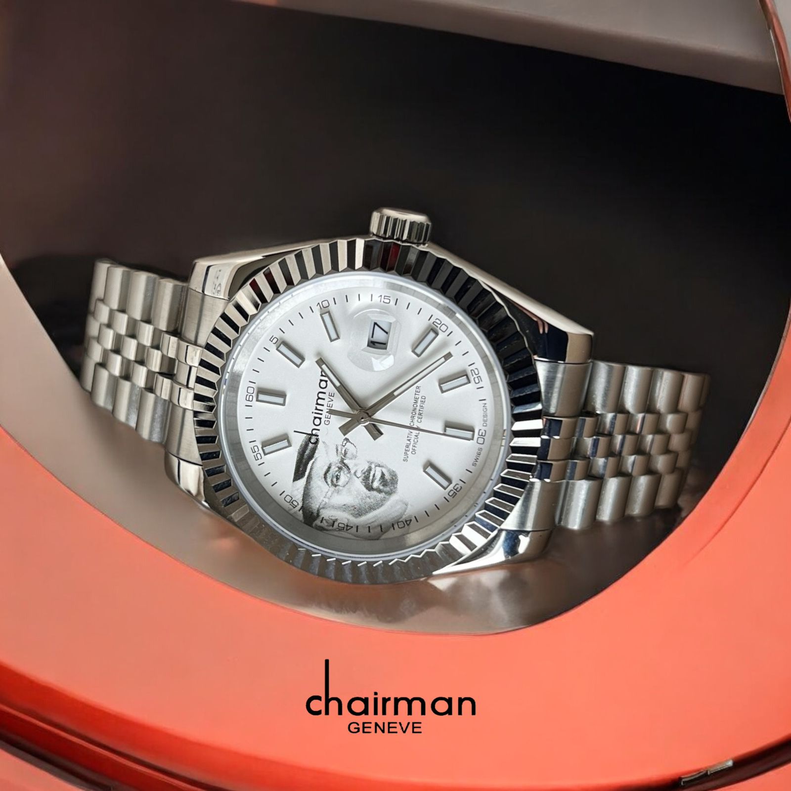 ساعة كرونومتر للرجال من تشيرمان جينيف بحزام فضي