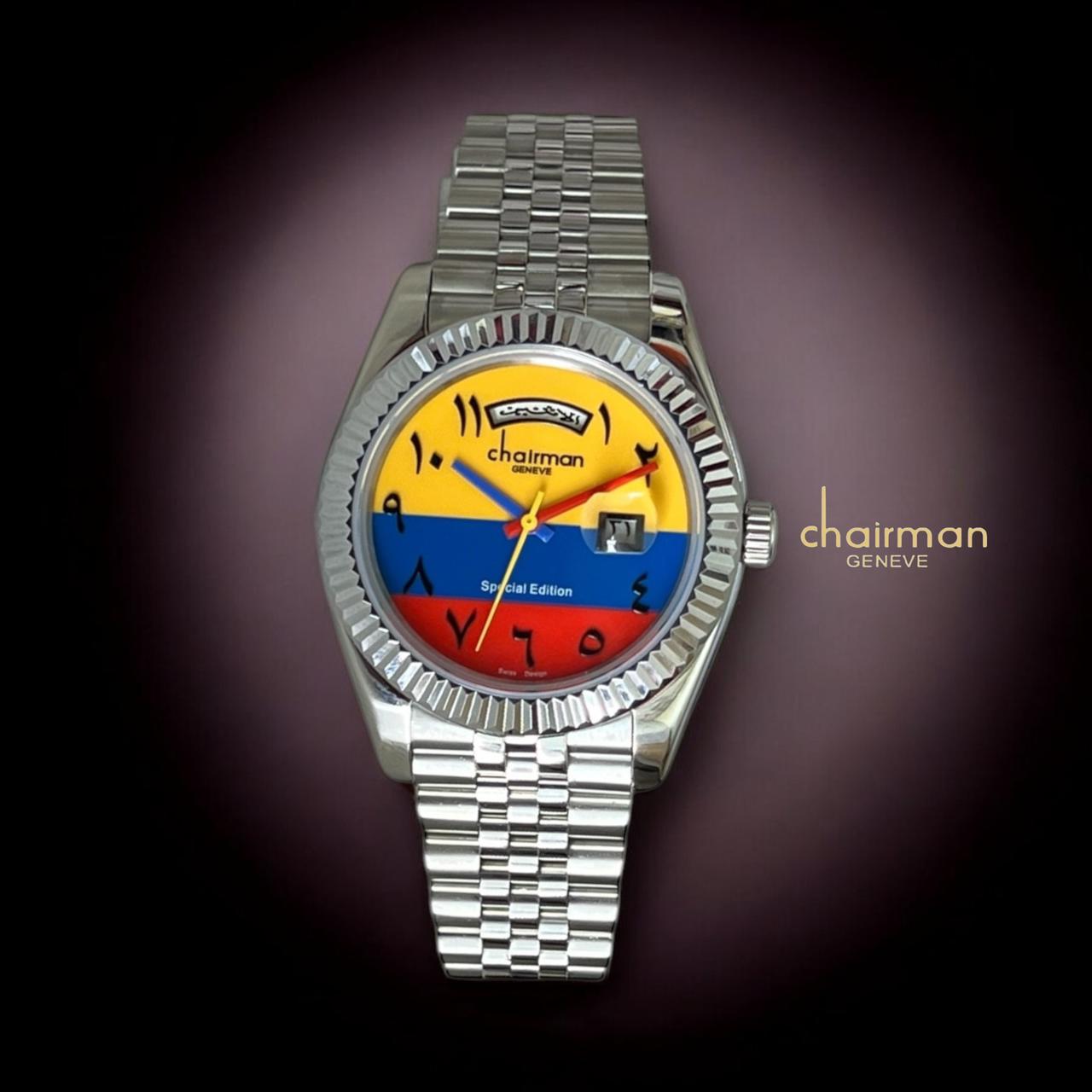 ادعم فريقك المفضل بأناقة مع ساعة رجالية من Colombia Fans Chairman Geneve Dated Arabic Mixed Color Dial Silver Chain. تتميز هذه الساعة الأنيقة والعصرية بمينا بألوان مختلطة مع أرقام عربية وسلسلة فضية، مما يجعلها الإكسسوار المثالي لأي مشجع. أظهر روح فريقك مع هذه الساعة عالية الجودة.