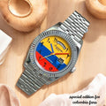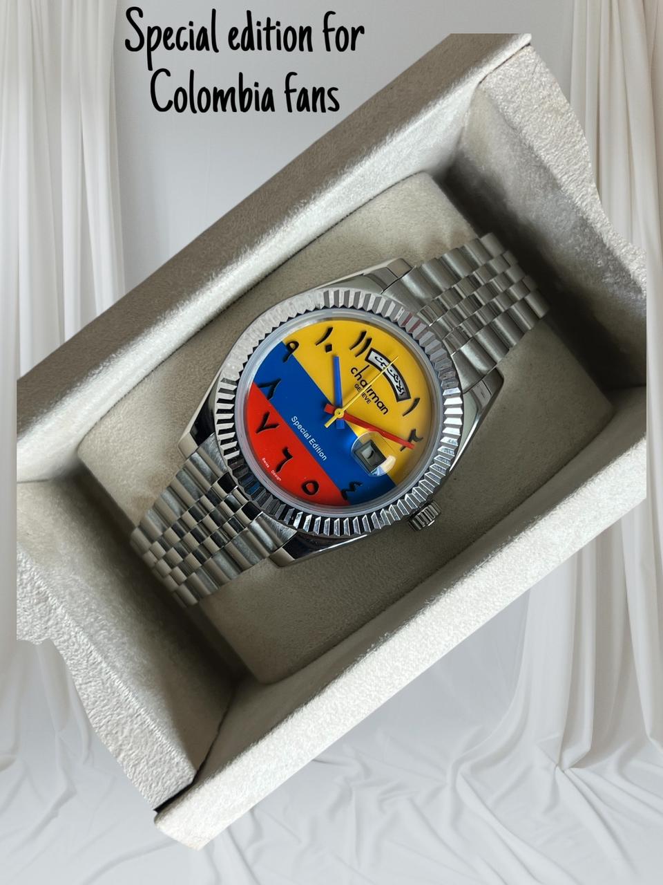 ساعة رجالية من مجموعة مشجعي كولومبيا جينيف ديتيد عربية بمينا بألوان مختلفة وسلسلة فضية