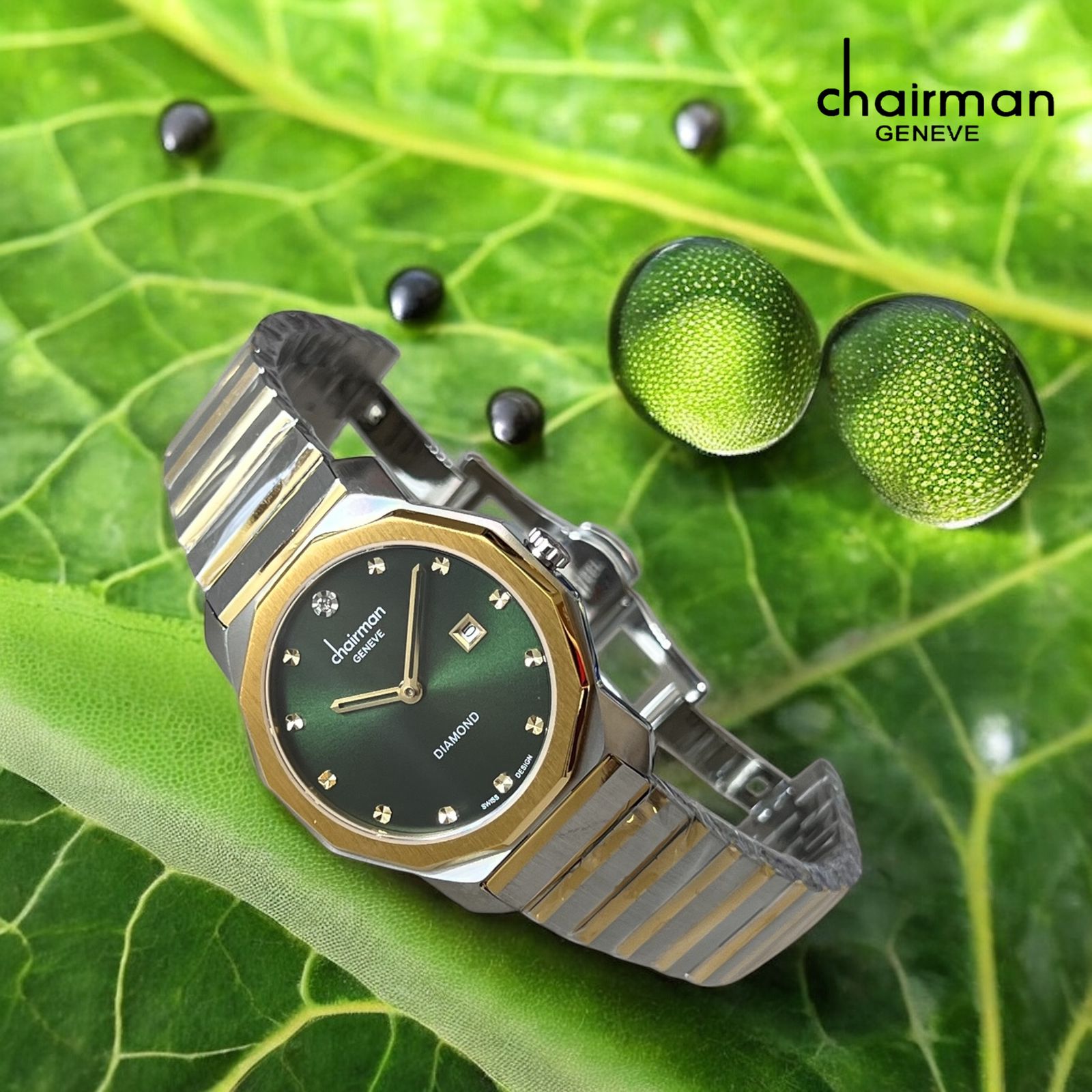 Elevate your style with the Diamond Chairman Geneve Ladies Watch, featuring a distinctive green dial set against a sophisticated silver and gold chain. This elegantly dated timepiece combines classic craftsmanship with luxurious accents, offering both reliability and refined appeal. Perfect for the modern gentleman seeking a statement accessory that blends tradition with contemporary design.