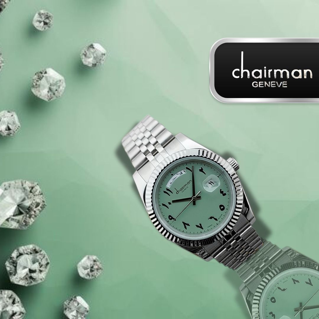 أضف لمسة من الفخامة إلى أي مظهر مع ساعة الهدايا الرجالية من Chairman Geneve. تتميز هذه الساعة المصنوعة في سويسرا بمينا عربية رائعة بلون أخضر فاتح مرح، ومن المؤكد أنها ستلفت انتباه الجميع. قدم هدية أنيقة وعالية الجودة مع Chairman Geneve.