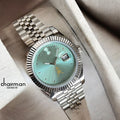 OMAN Emblem Chairman Geneve Dated Baby Green Dial Silver Chain Gents Watch