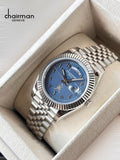 Elevate your wrist with timeless elegance. This distinguished gents watch features a striking blue dial adorned with Arabic numerals and a date window, capturing the essence of Omani heritage. The polished silver chain bracelet exudes sophistication, while the precision movement ensures reliable timekeeping for everyday wear and special occasions. A perfect blend of cultural pride and contemporary style, this timepiece makes a bold statement for the discerning gentleman.