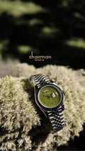 Elevate your style with this distinguished OMAN Emblem watch featuring an elegant olive green Arabic dial. The sophisticated day and date functions complement its luxurious silver chain, making this Chairman Geneve timepiece the perfect statement accessory for the discerning gentleman. A perfect blend of cultural heritage and premium craftsmanship that commands attention.