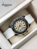 Elevate your style with the Quartz Chairman Geneve watch, featuring a sophisticated beige dial and a sleek white strap. Designed for gentlemen who appreciate timeless elegance, this watch combines precision quartz movement with a dated function for added practicality. Its clean, modern look makes it perfect for both professional and casual settings, ensuring you stay punctual with style wherever you go.