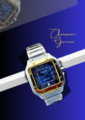 ساعة تشيرمين جينيف ستارب ذات الميناء الأزرق المستطيلة باللون الفضي والذهبي